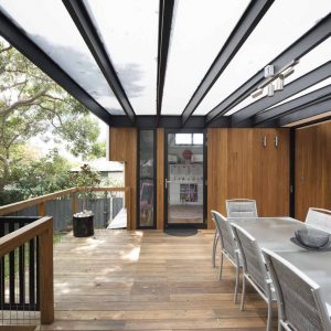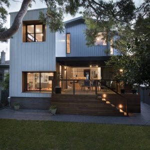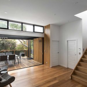 Extending the existing post-war cottage, an open-plan space was created, cleverly blurring the lines between the inside and out primarily through the use of the large face sliding door between the sitting room and deck. Ultimately, this facilitated all the desired functions of the client brief: usability, sociability and connection to the outdoors.