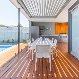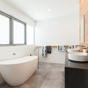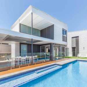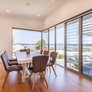 The integration of landscaped courtyards enhance the feeling of space and provide internal vistas from all rooms both on the ground and first floor. A large first floor deck and dining area provides 180 degree lake views, whilst the master suite ‘pavilion’ creates privacy and seclusion.