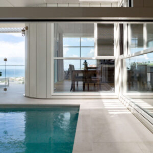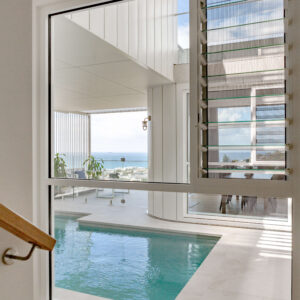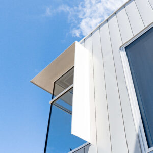 The minimalist residential house design features an all-white color scheme, wood finish floors, and a clean aesthetic that exudes simplicity and tranquility. The interior and exterior are painted crisp white to enhance spaciousness and natural light, while warm wood floors add subtle contrast and texture. Clean lines, uncluttered spaces, and functional layouts promote calm and order, with large windows and skylights maximizing brightness. Minimalist furnishings with sleek designs, integrated storage solutions, and occasional natural material accents create a serene, elegant living space that embodies the principles of minimalism.